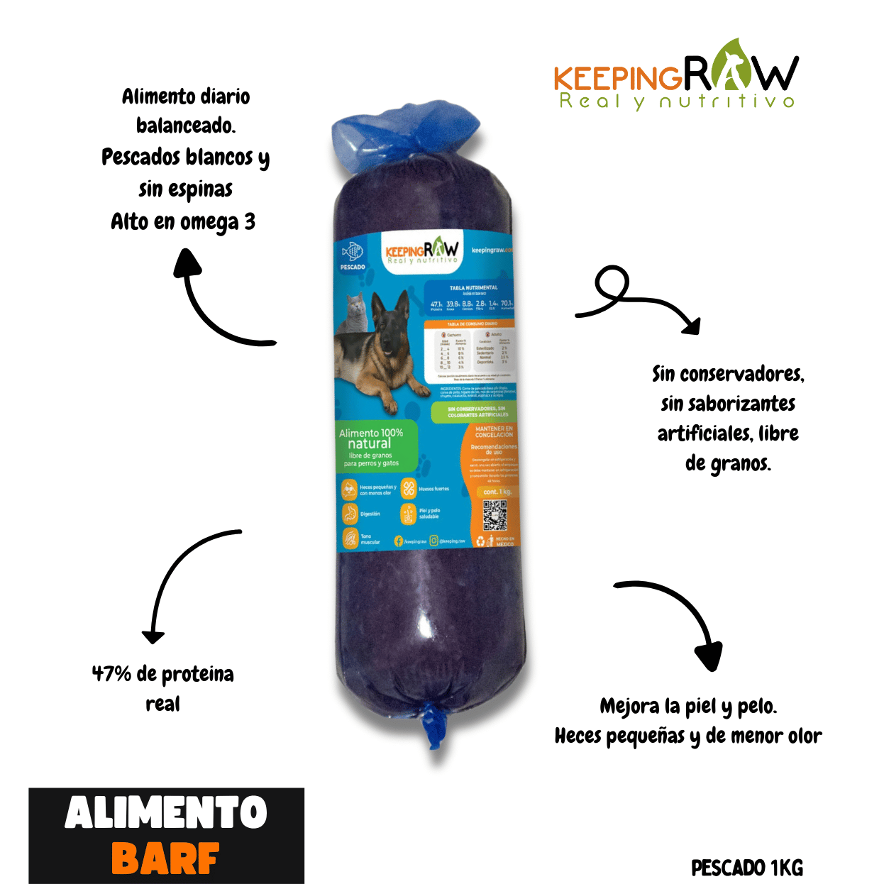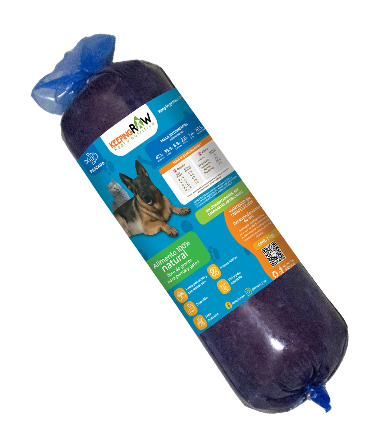 Carne de pescado basa y/o tilapia, carne de pollo, hígado de res, mix de vegetales (betabel, chayote, calabacita, brócoli, espinaca y acelga).