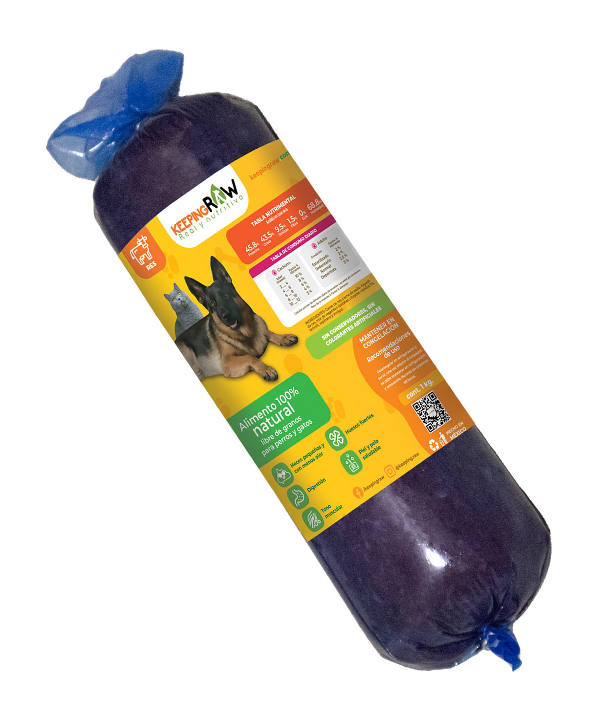 Carne de res, carne de pollo, hígado de res, mix de vegetales (betabel, chayote, calabacita, brócoli, espinaca y acelga).