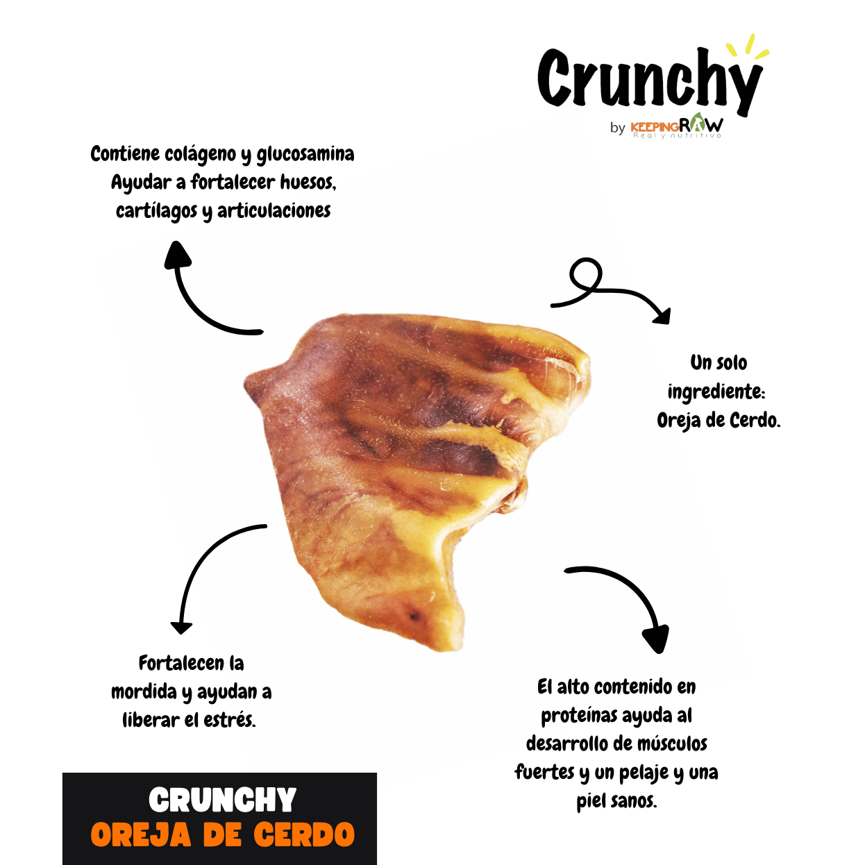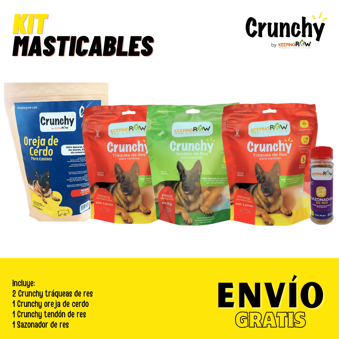 4 Crunchy mixtos: 1 pz Crunchy oreja de cerdo, 1pz Crunchy tendón de res, 2 pz Crunchy tráquea de res, 1 Sazonador de res.